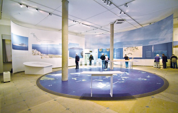 Die Verortung von Raum und Zeit stand am Anfang der Ausstellung. Handelsbeziehungen und die damit verbundenen Seewege wurden in einer großräumigen, medialen Inszenierung thematisiert. Großformatige Landschaftscollagen erzeugten die Atmosphäre für die Präsentation der anmutigen Idole. Dass auf den Kykladen aber nicht immer die Sonne scheint, dokumentierten auch Fotos von Winterstürmen. Den Schwerpunkt der Schau bildete die sorgfältig ausgeleuchtete Präsentation der Idole. Neuere Forschungen weisen nach, dass die Figuren immer wieder neu bemalt wurden. Eine kinoartige Aufprojektion, auf in Gips gefertigten Kopien, spielte diverse mögliche Bemalungen von nachgewiesenen Befunden bis hin zu spekulativeren Varianten durch. Welchen Sinn und Bedeutung hatten diese Bemalungen? Auch diese Frage wurde aufgegriffen und den Besuchern mögliche Interpretationen angeboten – ohne diese allerdings abschließend beantworten zu können. Ein Credo von Ranger Design ist, die Besucher an aktuellen Fragestellungen teilhaben zu lassen, auch wenn es keine verbindlichen Antworten gibt und nur spekulative Aussagen möglich sind. |