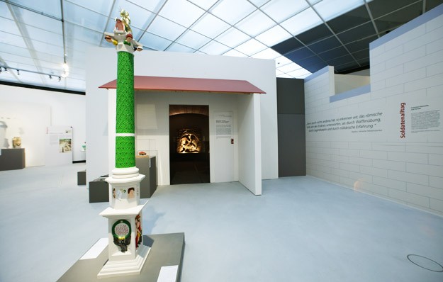 Architektur mit Architekturen war ein Gestaltungsprinzip der Ausstellung „Imperium Romanum – Roms Provinzen an Neckar, Rhein und Donau“ des Archäologischen Landesmuseums Baden-Württemberg. Alltagsszenen mit Experimental-