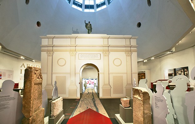 Architektur mit Architekturen war ein Gestaltungsprinzip der Ausstellung „Imperium Romanum – Roms Provinzen an Neckar, Rhein und Donau“ des Archäologischen Landesmuseums Baden-Württemberg. Alltagsszenen mit Experimental-