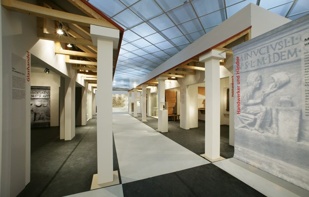 Architektur mit Architekturen war ein Gestaltungsprinzip der Ausstellung „Imperium Romanum – Roms Provinzen an Neckar, Rhein und Donau“ des Archäologischen Landesmuseums Baden-Württemberg. Alltagsszenen mit Experimental-