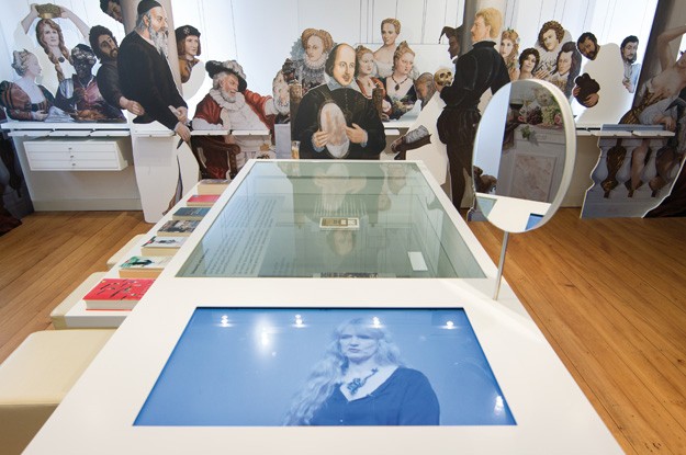 In einem kleinen Raum neben dem Theatersaal im Hartheimer Salmen entstand eine Ausstellung, die Dietrich Schwanitz und seine vielfältige Beziehung zu Shakespeare würdigt. Das von Schwanitz in Auftrag gegebene große Wandbild im Theatersaal wurde nachgestellt, jede darauf abgebildete Person wird auf ausziehbaren Tafeln exakt beschrieben. In einem Interview erläutert die Malerin Andrea Berthel die Vorstellungen von Dietrich Schwanitz bei der Entstehung des Gemäldes. Weggefährten von Schwanitz erläutern ihn und sein Werk. Wer sein Wissen testen möchte, kann dies in einem Quiz über Shakespeare tun. |