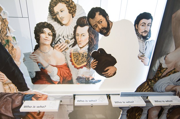In einem kleinen Raum neben dem Theatersaal im Hartheimer Salmen entstand eine Ausstellung, die Dietrich Schwanitz und seine vielfältige Beziehung zu Shakespeare würdigt. Das von Schwanitz in Auftrag gegebene große Wandbild im Theatersaal wurde nachgestellt, jede darauf abgebildete Person wird auf ausziehbaren Tafeln exakt beschrieben. In einem Interview erläutert die Malerin Andrea Berthel die Vorstellungen von Dietrich Schwanitz bei der Entstehung des Gemäldes. Weggefährten von Schwanitz erläutern ihn und sein Werk.