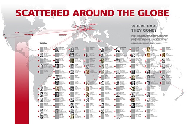 politischen Gründen fliehen mussten, oder deportiert oder ermordet wurden. 108 Lebenswege werden auf einer Weltkarte dargestellt. Die Biografien von neun Mitgliedern und Funktionären - unter anderem dem Ehrenpräsident des FC Bayern München Kurt Landauer - werden ausgiebig beleuchtet. Für den Standort Los Angeles wurden zudem jene 21 Mitglieder in den Vordergrund gerückt, die in die USA emigrierten. Ausgehend von der ersten Station, der Versöhnungskirche der KZ-Gedenkstätte Dachau, war die Ausstellung schon an über 30 Stationen in Deutschland zu sehen. Sie kann kostenlos ausgeliehen werden.