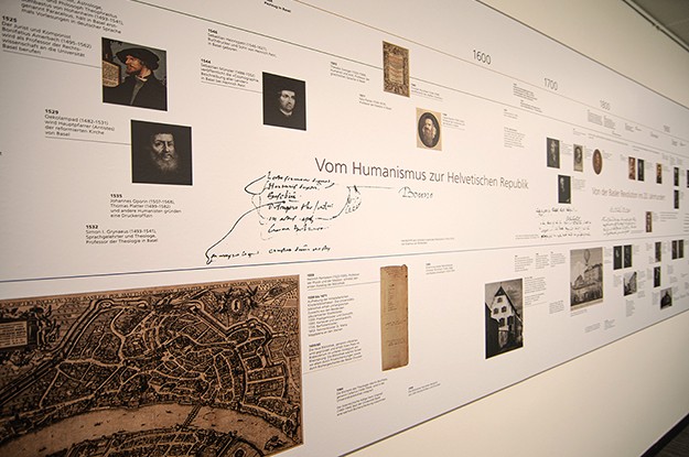 | 35 Mitarbeitende der Universitätsbibliothek Basel wählten ihr jeweiliges Lieblingsstück aus. So entstand ein breites Spektrum von Büchern zeitgenössischer und historischer Literatur, von Autographen, von Comics, von DVDs bis hin zu einem internationalen Verzeichnis von online verfolgbaren Vorträgen. Ranger Design gestaltete die Ausstellung in enger Zusammenarbeit mit der Kuratorin Dr. Yvonne Häfner. In früherer Kooperation mit ihr entstanden die Dauerausstellung im Wieland Gartenhaus in Biberach und die Ausstellung „Christoph Martin Wieland – Der Voltaire der Deutschen“ in Zürich und Biberach. |