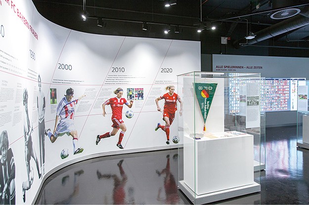 FC Bayern Frauen nach oben im Fokus, die Geschichte wird jedoch auch im gesellschaftlichen Kontext eingeordnet. So sind die Anfänge des Frauenfußballs vor weit über 100 Jahren genauso Bestandteil der Ausstellung wie die Sexismus-Debatte in den 1970er Jahren und das heutige Standing der Spielerinnen als (Halb-) Profis.