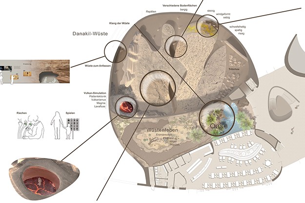Der Entwurf wurde im Rahmen des Wettbewerbs für die Danakil Klimazonenwelt in Erfurt eingereicht.
