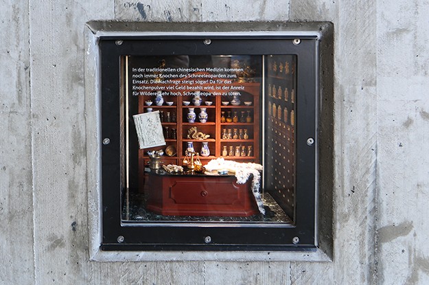gewohnheiten und Vorkommen der bedrohten Tierart. Beleuchtete Schaukästen in einem Besucher-Tunnel erweitern das Informations-