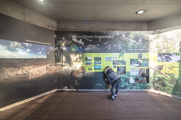 Das Amazonienhaus ist ein kombiniertes Tier- und Pflanzenhaus. Mit rund 2000 Pflanzen entstand in dem zur Jahrtausendwende eröffneten Haus ein kleiner südamerikanischer Regenwald. Vögel etwa zehn unterschiedlicher Arten fliegen frei im Haus. Die Ausstellung erklärt das ökologische System des Regenwaldes und wirbt für die Erhaltung dieses pflanzen- und tierreichen Lebensraumes. Das Unterstützungsprogramm der Wilhelma ermöglichte den Ankauf von Regenwaldflächen in Zentralamerika. Die Ausstellung erläutert die vielfältigen Aspekte dieses Projektes.