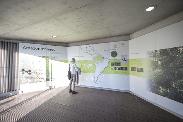 Das Amazonienhaus ist ein kombiniertes Tier- und Pflanzenhaus. Mit rund 2000 Pflanzen entstand in dem zur Jahrtausendwende eröffneten Haus ein kleiner südamerikanischer Regenwald. Vögel etwa zehn unterschiedlicher Arten fliegen frei im Haus. Die Ausstellung erklärt das ökologische System des Regenwaldes und wirbt für die Erhaltung dieses pflanzen- und tierreichen Lebensraumes. Das Unterstützungsprogramm der Wilhelma ermöglichte den Ankauf von Regenwaldflächen in Zentralamerika. Die Ausstellung erläutert die vielfältigen Aspekte dieses Projektes.