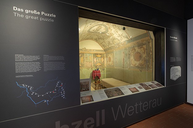 Auf der Saalburg bei Bad Homburg wird ein Raum gezeigt, der aus 10.000 Fragmenten rekonstruiert wurde. Durch deren Anordnung konnte die Form und Funktion des Raumes wiedergewonnen werden. Die Offziersunterkunft eines römischen Reiterkastells zeigt Figurenszenen aus dem griechischen Sagenkreis und von römischen Gottheiten.