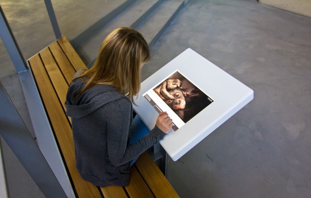 Das neue Haus für Afrikanische Menschenaffen der Architekten Hascher und Jehle im zoologisch-botanischen Garten Wilhelma ermöglicht den Besuchern einen neuen Blick auf Bonobos und Gorillas. Der Bau in Form eines Hügels lässt Besucher und Menschenaffen in engen Kontakt treten, wenn auch durch dicke Glasscheiben getrennt. Ein in die Architektur integriertes Ausstellungssystem lädt die Besucher ein, ihr Wissen zu vertiefen. Ranger Design entwickelte hierzu eine innovatives Gesamtkonzept, das die Informationselemente in Blickbezug zu den Menschenaffen bringt, wo Beobachtung und Vertiefung sinnvoll sind. Große, knappe Überschriften reissen Themen an und machen Lust auf mehr Information. Leittexte liefern Basiswissen. Mit vielen Fotos und knappen, erklärenden Texten wird auf typische Verhaltensmuster von Bonobos bzw. Gorillas aufmerksam gemacht. Touchscreens laden zur weiteren Informationsvertiefung ein. Foto- und Filmsequenzen können abgerufen werden. An anderen Medienstationen kann man hören, wie Gorillas zufrieden brummeln oder warnend husten. Ein Kino lädt zu Filmvorführungen ein. Modelle von Gorillahänden und Schädeln lassen die Besucher nach Ähnlichkeiten suchen. An einer Quizstation können Besucher ihr neu erworbenes Wissen testen. Für die Bonobos selbst wurde ein Monitor hinter Verbundglas installiert, auf dem in einer Art Bonobo-TV zu bestimmten Zeiten Filme gezeigt werden. Die Besucher können dann die Reaktion der Bonobos auf die gezeigten Filme studieren. Das Informationssystem ist auf hohe Variabilität hin konzipiert und zeigt auch den aktuellen Bestand der Affengruppen. Es ist äußerst robust und kann hohen Besucherzahlen gerecht werden. Die Medientechnik ist spritzwassergeschützt verbaut und wird mit Edelstahlfiltern vor Insekten geschützt.