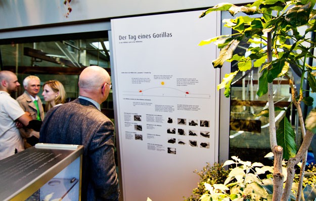 Das neue Haus für Afrikanische Menschenaffen der Architekten Hascher und Jehle im zoologisch-botanischen Garten Wilhelma ermöglicht den Besuchern einen neuen Blick auf Bonobos und Gorillas. Der Bau in Form eines Hügels lässt Besucher und Menschenaffen in engen Kontakt treten, wenn auch durch dicke Glasscheiben getrennt. Ein in die Architektur integriertes Ausstellungssystem lädt die Besucher ein, ihr Wissen zu vertiefen. Ranger Design entwickelte hierzu eine innovatives Gesamtkonzept, das die Informationselemente in Blickbezug zu den Menschenaffen bringt, wo Beobachtung und Vertiefung sinnvoll sind. Große, knappe Überschriften reissen Themen an und machen Lust auf mehr Information. Leittexte liefern Basiswissen. Mit vielen Fotos und knappen, erklärenden Texten wird auf typische Verhaltensmuster von Bonobos bzw. Gorillas aufmerksam gemacht. Touchscreens laden zur weiteren Informationsvertiefung ein. Foto- und Filmsequenzen können abgerufen werden. An anderen Medienstationen kann man hören, wie Gorillas zufrieden brummeln oder warnend husten. Ein Kino lädt zu Filmvorführungen ein. Modelle von Gorillahänden und Schädeln lassen die Besucher nach Ähnlichkeiten suchen. An einer Quizstation können Besucher ihr neu erworbenes Wissen testen. Für die Bonobos selbst wurde ein Monitor hinter Verbundglas installiert, auf dem in einer Art Bonobo-TV zu bestimmten Zeiten Filme gezeigt werden. Die Besucher können dann die Reaktion der Bonobos auf die gezeigten Filme studieren. Das Informationssystem ist auf hohe Variabilität hin konzipiert und zeigt auch den aktuellen Bestand der Affengruppen. Es ist äußerst robust und kann hohen Besucherzahlen gerecht werden. Die Medientechnik ist spritzwassergeschützt verbaut und wird mit Edelstahlfiltern vor Insekten geschützt.