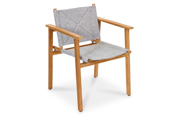 Der Sessel Tennis Match von Fischer Möbel wurde in Mailand präsentiert. Mit seiner reduzierten, materialsparenden Formgebung ist er mit 5 kg ein Leichtgewicht. Wie sein Familienmitglied, der Tennis Ergonomic, nutzt er einen Materialmix. Gefertigt wird er aus nachhaltig angebautem Teakholz, wetterfestem Gewebe und Edelstahl.