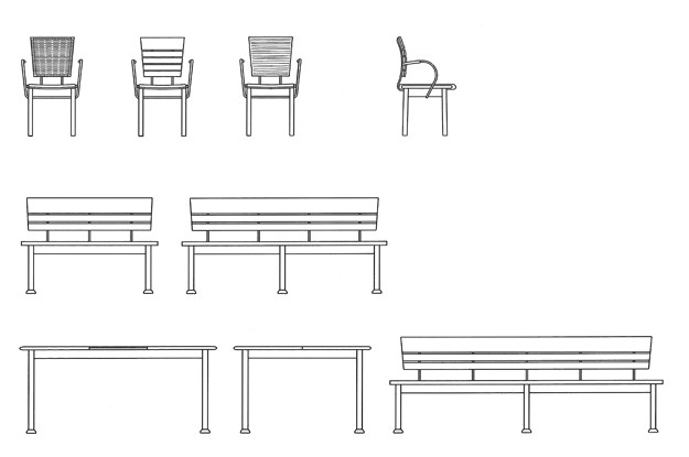 Stühle, Bänke und Tische für "eViva!"