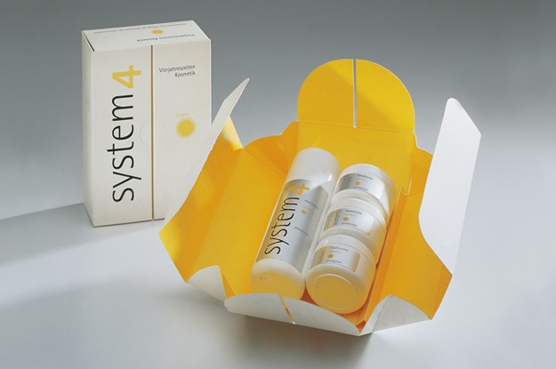 | Frühjahr, Sommer, Herbst und Winter: Der immer wiederkehrende Wechsel der Jahreszeiten gab den Anstoss für einen griffigen Produktnamen. System 4 heißt die Kosmetikserie, die ihre Anwenderinnen und Anwender mildpflegend durchs ganze Jahr begleitet. Nicht nur das Design der Verpackungslinie kommt von Ranger Design, sondern auch die Idee für den Namen. Die mit dem Deutschen Verpackungsdesign-Preis ausgezeichnete Verpackung spielt mit matten und glänzenden Oberflächen und Prägungen. ![]() |