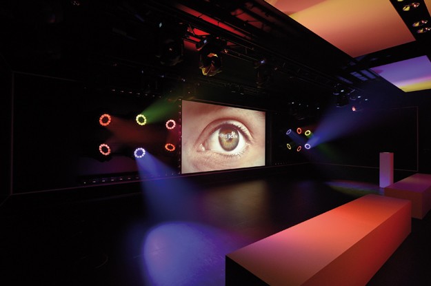 von OSRAM bildet das Zentrum der World of Light. Im Erdgeschoß sorgt ein bewegliches Glas-Trennwandsystem für unterschiedliche Raum-