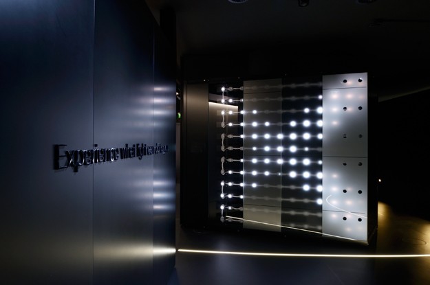 varianten: Offen als Fläche für Pressekonferenzen, geschlossen entsteht ein großzügiger Workshop-Bereich. In einer Light Box wird Licht emotional erlebbar. Eine Zeitachse der Lichttechnik dokumentiert Meilensteine der Entwicklung. Ranger Design konzipierte die Schau im Dialog