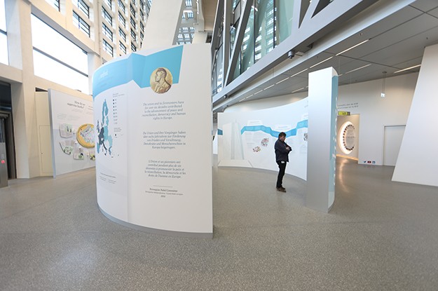 Das Visitor Centre informiert über die komplexen Aufgaben der Europäischen Zentralbank in Frankfurt am Main. Die Begriffe „maintain, safeguard, connect, achieve“ strukturieren die Präsentation. Eine begehbare Karte von Europa kommuniziert über Ipads in allen Sprachen des Euroraumes mit den Besuchern. Die Software erkennt über die nationalen Rückseitenmotive der Euro-Münzen das jeweilige Land und bietet vielfältige Informationen,