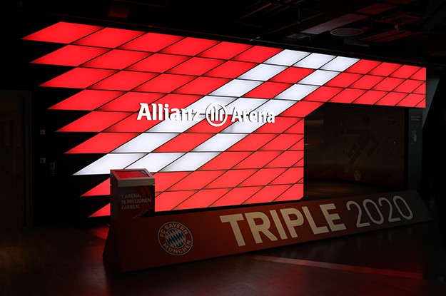 | Neue Wege der Kommunikation beschreitet der Allianz Arena Showroom. Die vielfältigen kreativen Möglichkeiten der von den Architekten Herzog & de Meuron gestalteten Stadion-Fassade der Allianz Arena können die Besucher interaktiv erleben. Weitere interaktiv abrufbare Informationen liefert – ohne direkte Berührung – eine mit Piktogrammen gestaltete große Wandfläche, auf die weitere Informationen, Filme, Fotos, Fragen und Antworten aufproijziert werden. Geräusche ergänzen die interaktiven Animationen. |