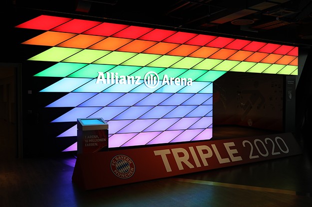 Neue Wege der Kommunikation beschreitet der Allianz Arena Showroom. Die vielfältigen kreativen Möglichkeiten der von den Architekten Herzog & de Meuron gestalteten Stadion-Fassade der Allianz Arena können die Besucher interaktiv erleben. Weitere interaktiv abrufbare Informationen liefert – ohne direkte Berührung – eine mit Piktogrammen gestaltete große Wandfläche, auf die weitere Informationen, Filme, Fotos, Fragen und Antworten aufproijziert werden. Geräusche ergänzen die interaktiven Animationen.