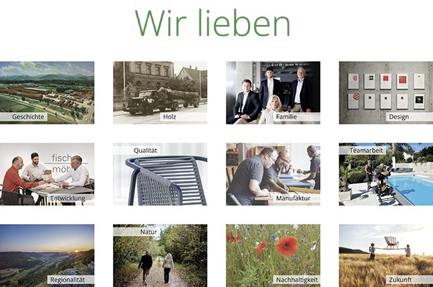 | Fischer Möbel und Ranger Design arbeiten über viele Jahre hinweg seit 1990 zusammen: Im Produktdesign, bei Messeständen, in der Kommunikation. Auch der Fischer-Möbel-Showroom wurde von Ranger Design gestaltet. Ein aktuelles Ergebnis der Zusammenarbeit ist die Selbstdarstellung von Fischer Möbel auf deren Homepage. Unter dem Titel "Wir lieben" werden die Geschichte des Unternehmens, seine Entwicklung hin zu Designprodukten, seine Werte, Qualitätsvorstellungen und seine nachhaltige Zukunftsperspektive dargestellt. |